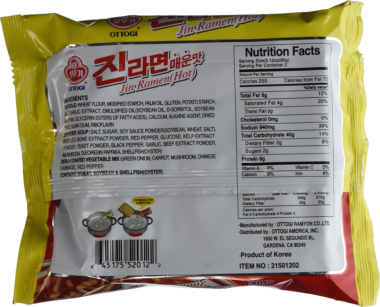 Ottogi Jin Ramen Spicy Calories Nutrition Analysis More Fooducate
